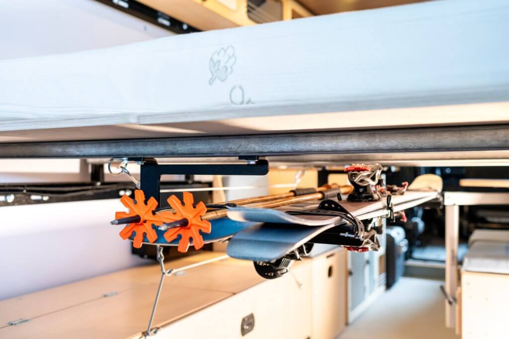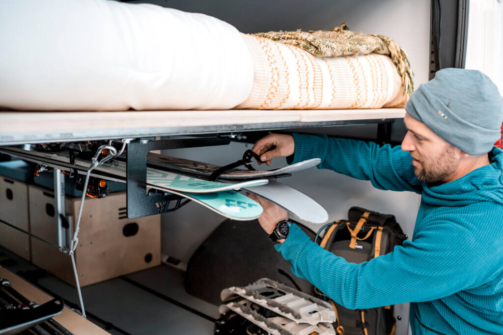 On the Wayfarer Vans Fan Facebook Group, one question kept popping up over the years: “How do you store long gear like skis, snowboards and fishing poles so they are out of the way and not getting damaged during travel?”