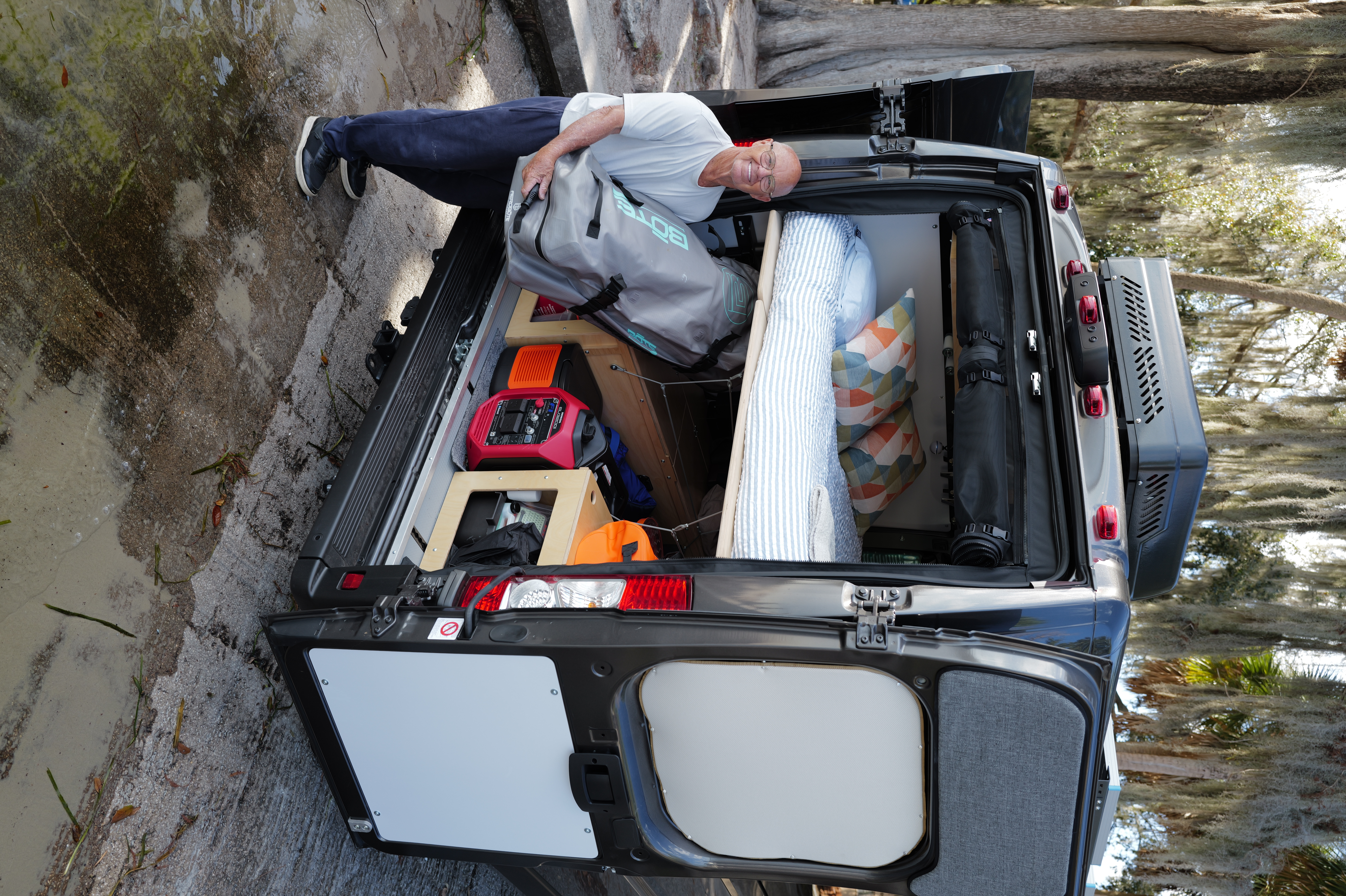 We are Harvey and Denise from central Florida, and we are thrilled to have found Wayfarer Vans! Our Walt conversion van has truly changed the way we live. Not only can we travel far and wide, we use it often to turn daily routines into new adventures. We spend a lot of time in and around pools, springs, lakes and the ocean. We started looking for a van when towing a trailer for our gear and equipment became too challenging. We wanted something that was small enough to go everywhere a car could go, but spacious enough to add a level of comfort to our expeditions (and somewhere to change into our dry clothes!). We had pretty much given up on the idea of a van conversion due to the complexity and cost of the vehicles we found. Then, one day we discovered Wayfarer Vans via a YouTube video review. Wayfarer embodied everything that we were looking for with simple functional elegance (think quality materials meets great design). We discovered a freedom in which we could go anywhere in comfort and take all the “things” that make getting “out there” such fun! Whether we are packing our e-foils, paddle boards, snorkeling gear, surf boards, bicycles, camping gear, or photo equipment, the modular set-up of Wayfarer Vans has made all things possible. We love our van so much that we even started “van dates.” Instead of being denied last minute reservations at a crowded restaurant, we order take out and find a scenic place to park. We have owned several RVs in the past, and none have brought the joy that we have in our Walt conversion. We are now a “big rig” in a compact body. We are versatile and ready to roam!
